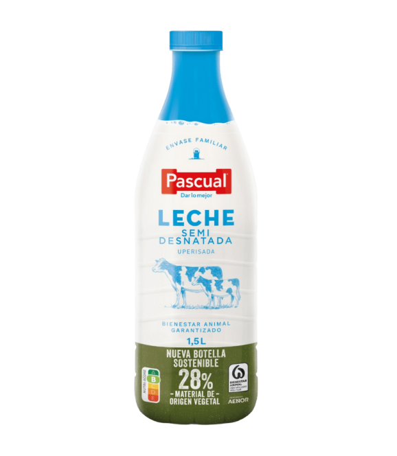 La leche semidesnatada Pascual 1,5 l combina la frescura del campo con un sabor equilibrado y cremoso. Recolectada bajo el estándar «Bienestar Animal», esta leche es una opción ideal para quienes buscan calidad y conveniencia. Aporta proteínas, calcio y vitaminas esenciales en cada vaso. Es perfecta para el desayuno, recetas diarias o meriendas saludables. Su práctico formato de 1,5 litros la convierte en el mejor aliado para familias exigentes que valoran el bienestar y la nutrición.